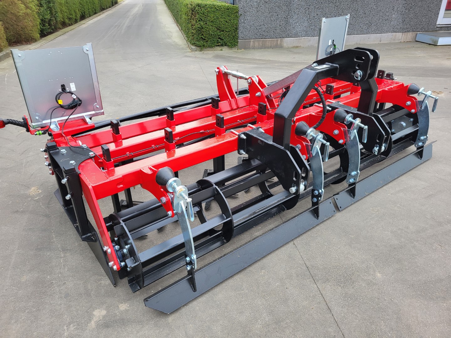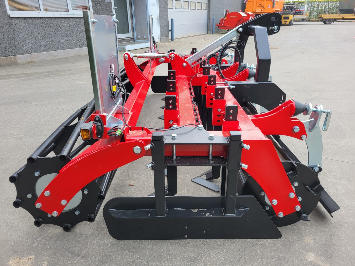Préparateur de sol frontal de 3 mètres de large, avec une largeur de travail effective de 3 mètres.